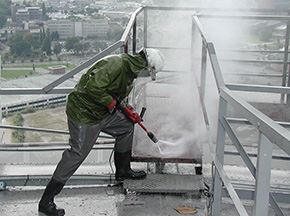 超高壓水除銹設備一般由超高壓清洗機、進水管、超高壓出水管、超高壓水槍及收集盤、高空車或機器人、水槍固定伸縮裝置、廢水回收管、壓縮空氣控制管、廢水和油漆皮回收過濾處理裝置等,可根據需要選用。[查看詳情]