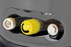 凱馳HD6/15C緊湊型冷水高壓清洗機是商業端用戶的理想入門級型號。直立式HD6/15C具有顯著的機動性以及緊湊度,以及高度可調成形鋁制推柄。優勢是不使用工具便可以根據操作者的身高進行調節。HD6/15C具備標準的凱馳特征,例如完整的耐震塑料蓋,可保護高壓泵防止損壞和污染。其它特點包括電源線存儲(帶插頭鎖)以及噴嘴廂,合理布置在裝置后部。清洗機配置了三孔噴嘴,可快速、容易地調節水噴射?梢赃x擇高壓筆直噴射、高壓扁平噴射(25°)以及低壓扁平噴射。低壓扁平噴射(40°)用于配發清潔劑。三活塞軸流泵和鉻不銹鋼活塞以及黃銅柱頭,確保長使用壽命以及低故障率。